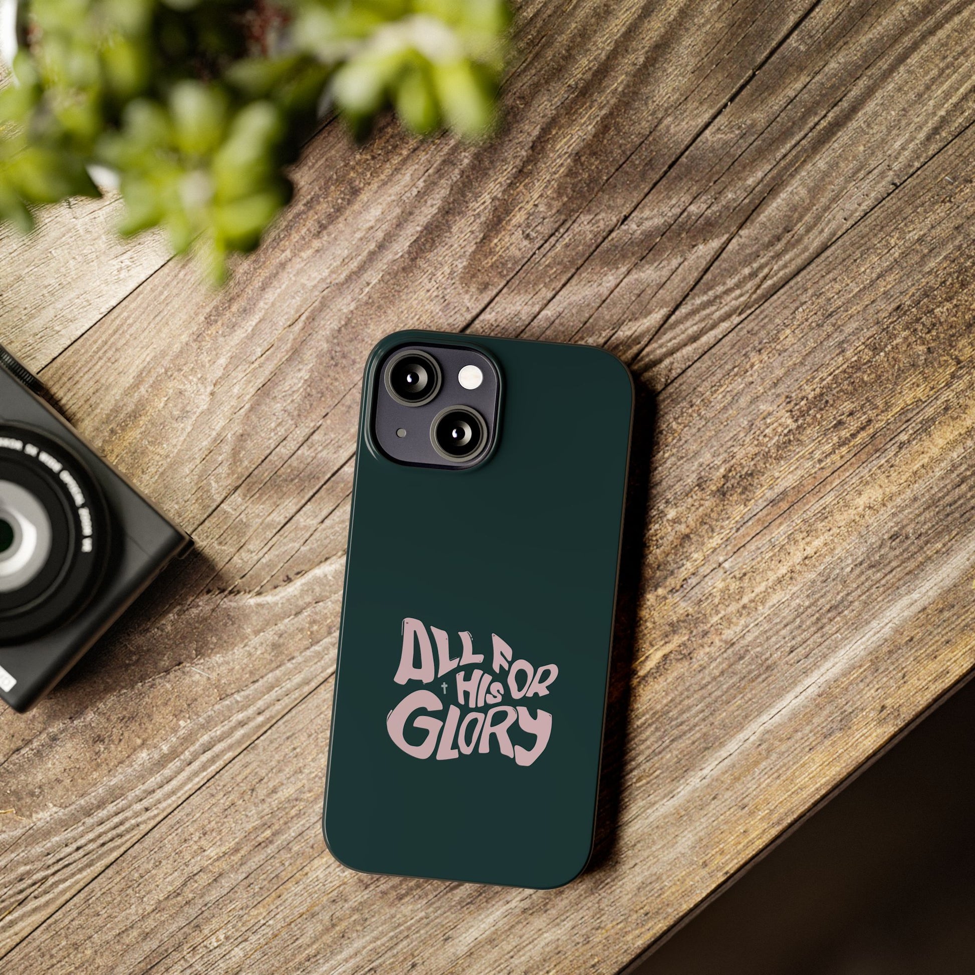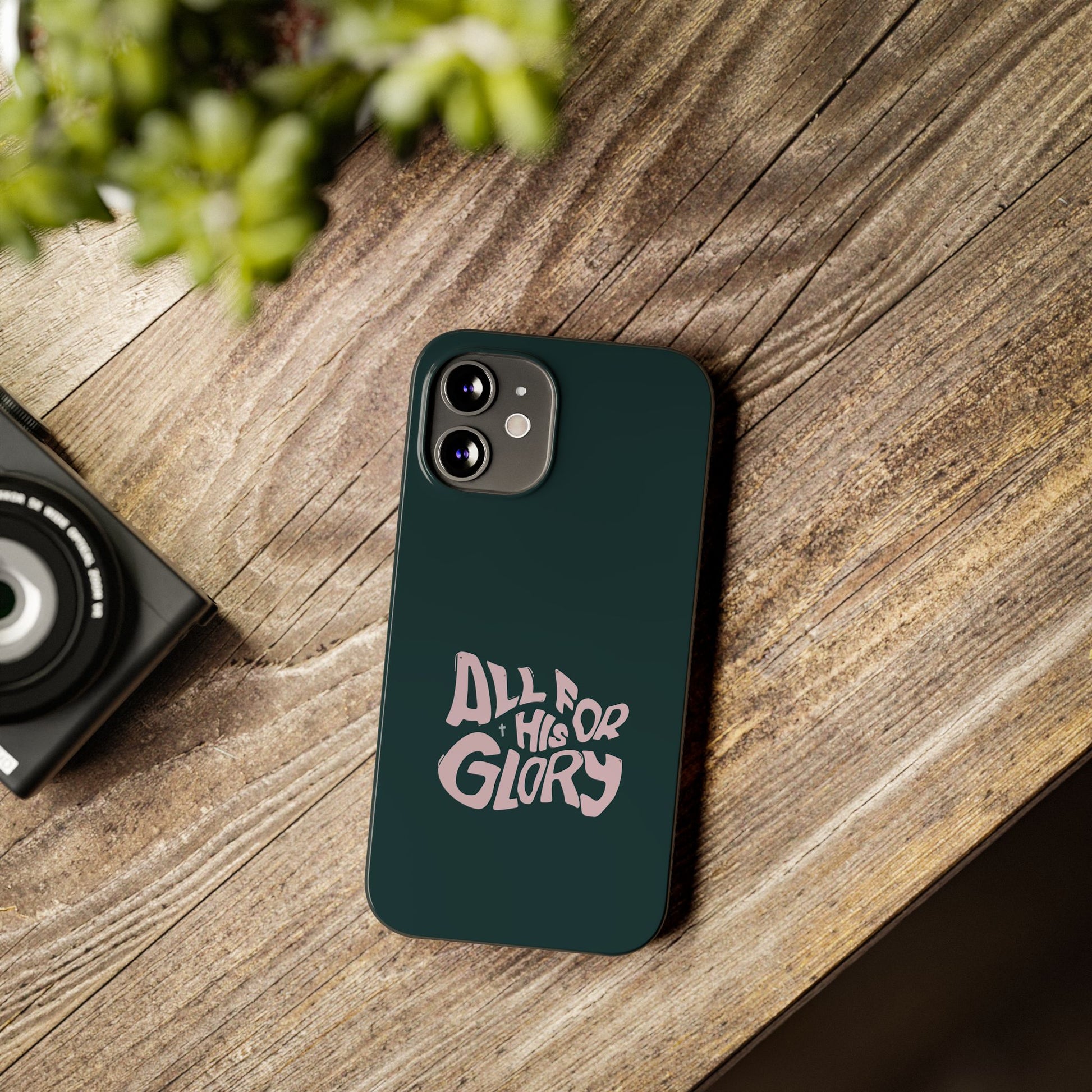 Make a bold statement with our "All for His Glory" phone case, and carry your faith with you wherever you go!