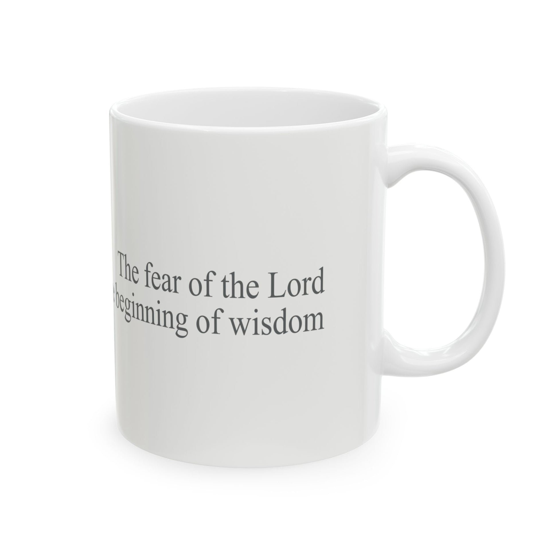 Warm up with a comforting cup from our customized ceramic mug. Designed with a sleek, white ceramic finish, this 11-ounce mug features an inspiring message, "The fear of the Lord is the beginning of wisdom." It’s the ideal choice for coffee, tea, or hot chocolate lovers. Plus, it’s BPA and lead-free, and safe for both the microwave and dishwasher, making it as practical as it is beautiful.