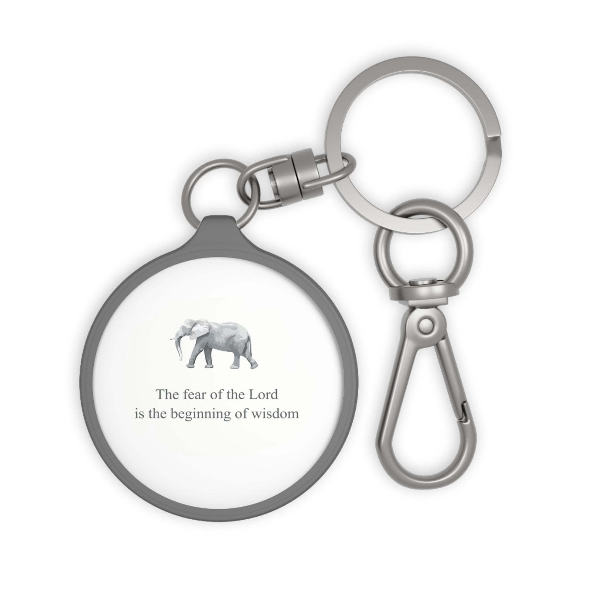 "The fear of the Lord is the beginning of wisdom" keyring: durable, stylish, and faith-inspired.